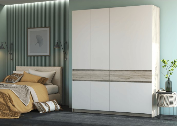 Если богатству вашего гардероба можно только позавидовать, то рекомендуем вам обратить свое внимание на четырехстворчатый шкаф линейки Бостон. Четыре выдвижных ящика, две металлические штанги для хранения одежды, а также множество полок – здесь есть все, что нужно большой семье. А если вам этого мало, то шкафы серии Бостон можно комбинировать между собой, и из нескольких изделий этой линейки легко можно создать крайне емкую систему хранения домашних вещей.