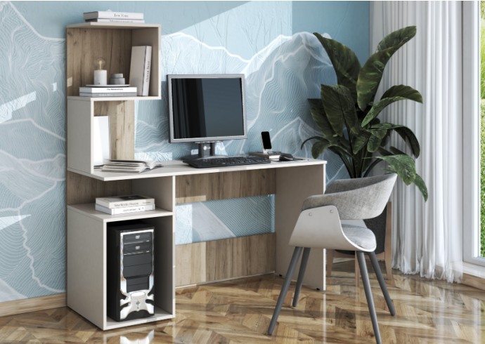 Задняя часть письменного стола под столешницей имеет две вязки размером Д.953хВ.234мм, обеспечивающие жесткость конструкции. Цвет — ЛДСП - Дуб Крафт серый.