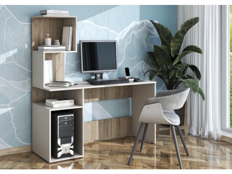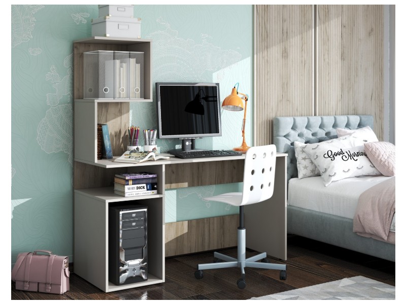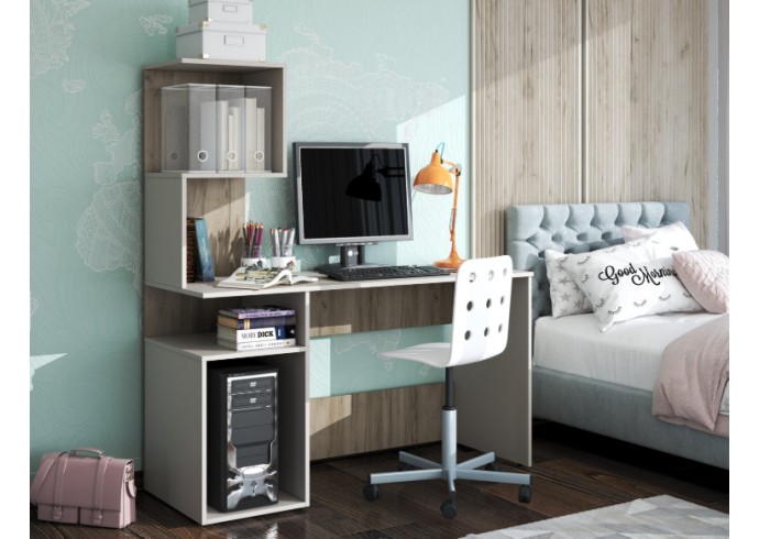Блок с полками. Состоит из одного щита, на который крепится блок из полок и открытой ниши под столешницей письменного стола.