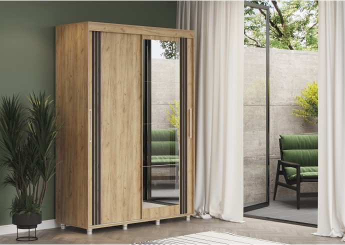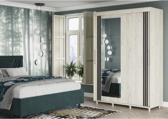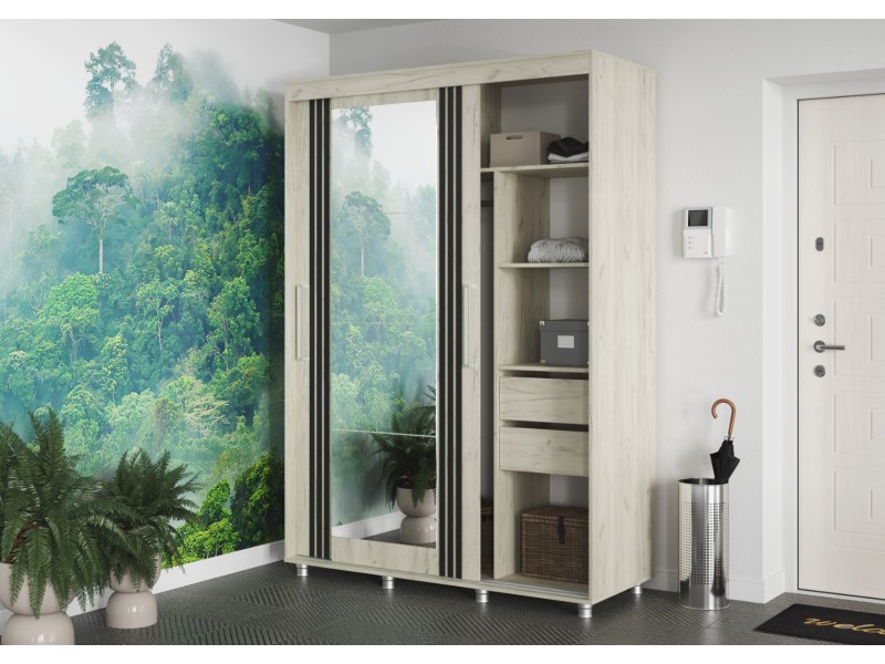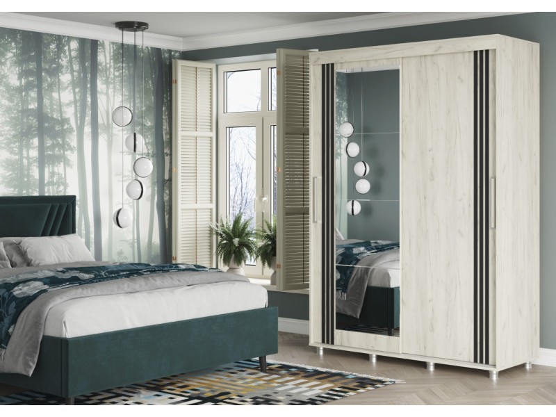 ФОРЕСТ Шкаф-купе 1.5 м. производится с фасадами, выполненными из ЛДСП 16мм. в цвет каркаса, дополнен комплектом зеркал на одной из створок и штапиком-накладкой (6*25 мм) на обеих створках.