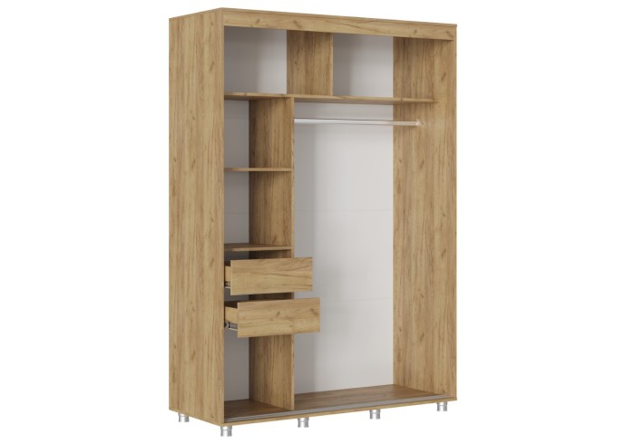 Габаритные размеры всего изделия – Д.1500 x В.2172 x Г.598 мм., внутренняя, полезная глубина составляет 490мм., что даёт возможность вешать одежду в полную глубину.