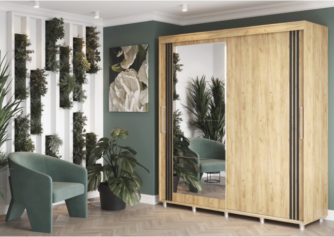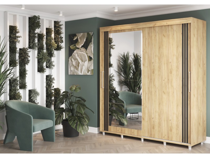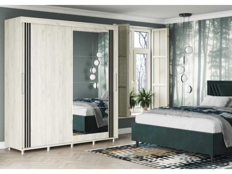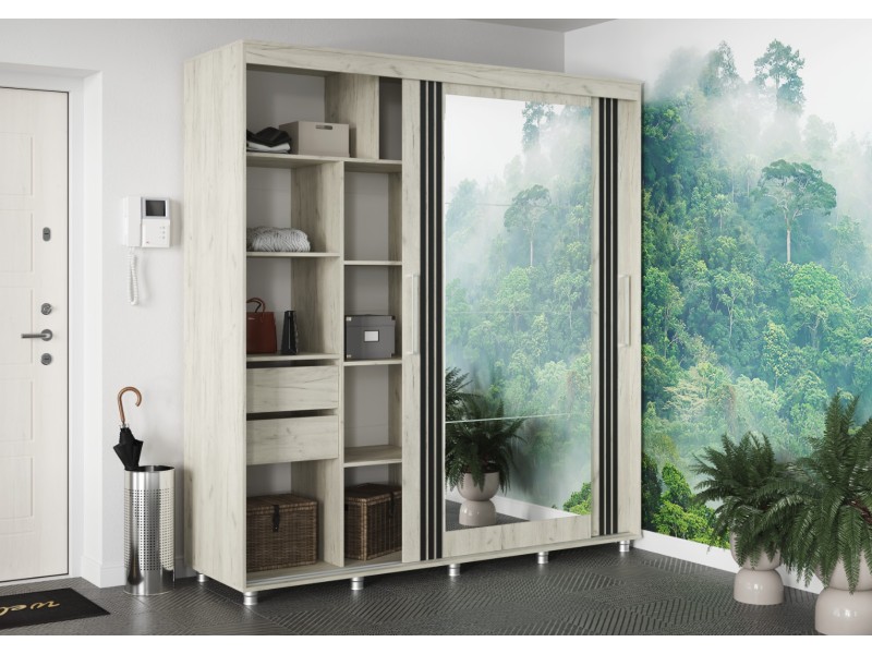 ФОРЕСТ Шкаф-купе 2.0 м. производится с фасадами, выполненными из ЛДСП 16мм. в цвет каркаса, дополнен комплектом зеркал на одной из створок и штапиком-накладкой (6*25 мм) на обеих створках.