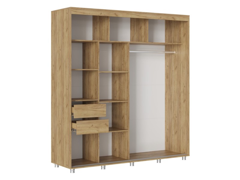 Габаритные размеры всего изделия – Д.2000 x В.2172 x Г.598 мм., внутренняя, полезная глубина составляет 490мм., что даёт возможность вешать одежду в полную глубину.