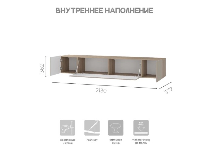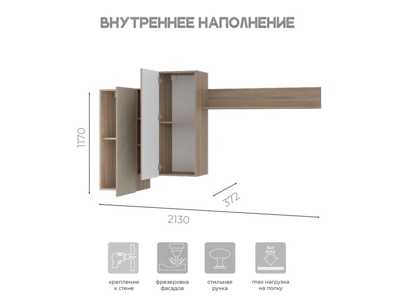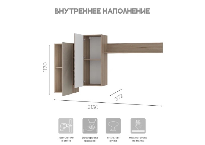 Максимальная нагрузка на полку - 10 кг. Кромка – 0,4 мм. Петли накладные.
