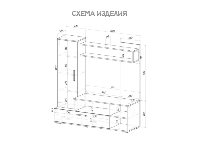 Место под ТВ (Ш*В*Г), мм