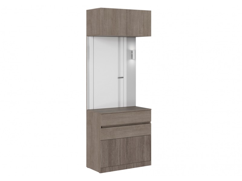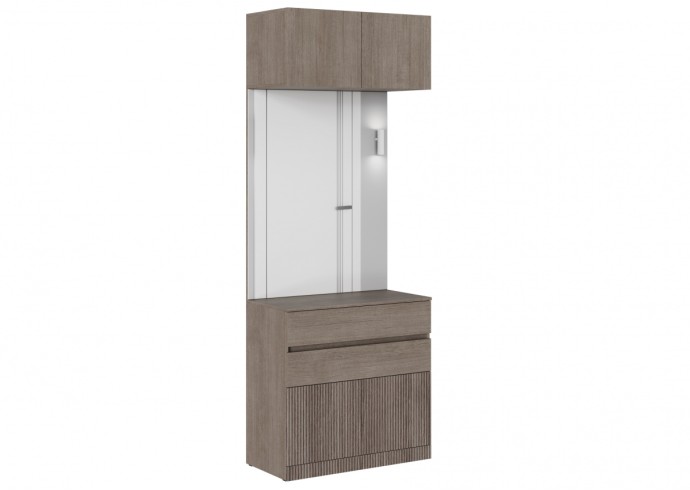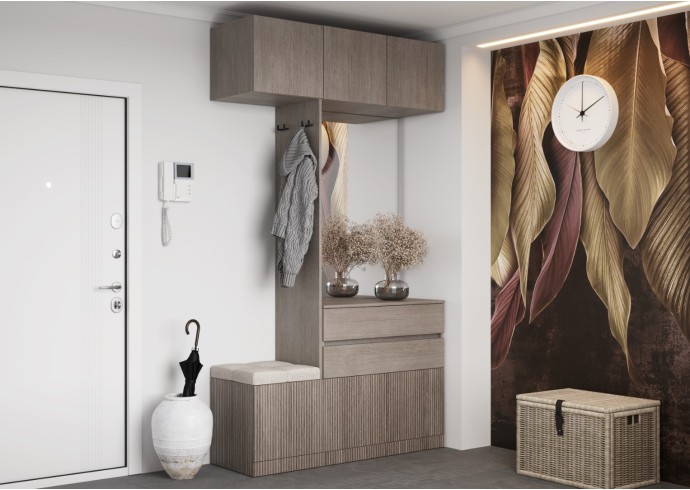 - Фасады с механизмом открывания при нажатии: Верхние и нижние фасады прихожей открываются легким нажатием, что делает использование комфортным и без лишних усилий.
