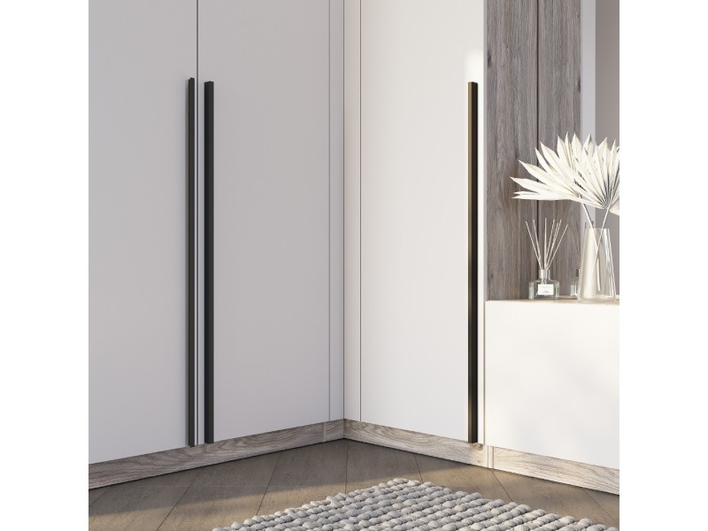 Ручки - накладные, пластиковые, черного цвета, 430 мм (КМ-02, ТБ-18, ШКН–06, ШКН–07, ПС-05, ТБ-11), 1000 мм (ПН-01, ШК-03, ШКУ–06), СШ–01 – ручек нет, открывание производится за счет удлиненного фасада. Крючки – пластиковые, серого цвета, (ПР–01, ПР–03).