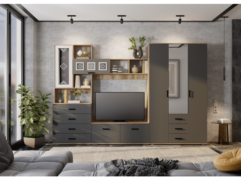 Модульная гостиная "Вегас" выполнена в современном стиле. Функциональная и лаконичная мебель, контрастные тона, стилизованный декор, сочетающий в себе простые геометрические формы, придают любому помещению уют и тепло.