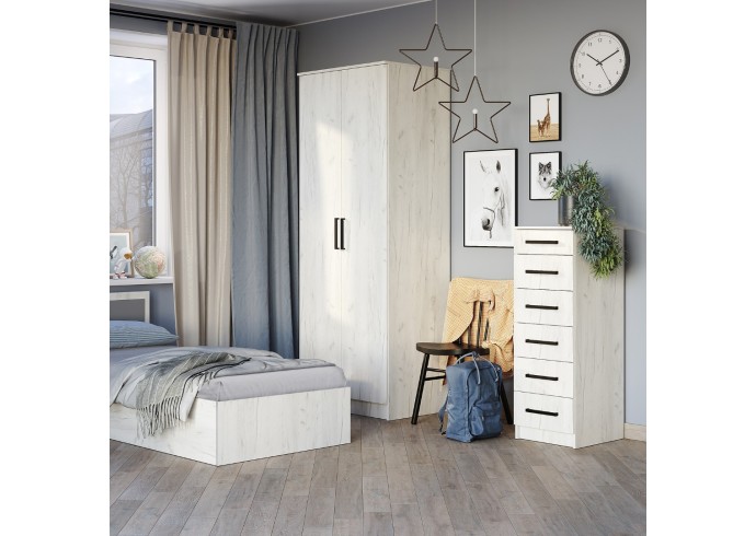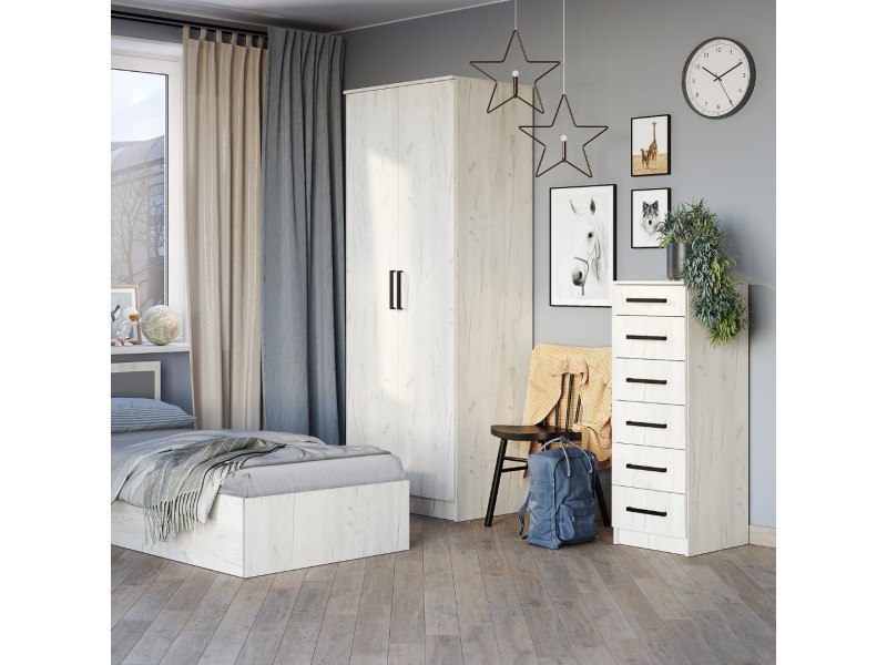 Коллекция «Фиеста» - это стильная и универсальная коллекция мебели, которая включает в себя все необходимые предметы для обустройства комнаты. Светлый, трендовый оттенок «дуб крафт белый» создает атмосферу легкости и тепла.