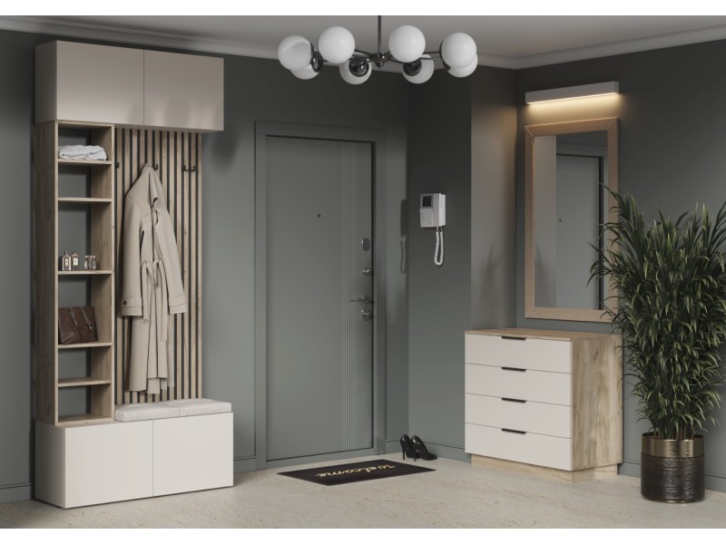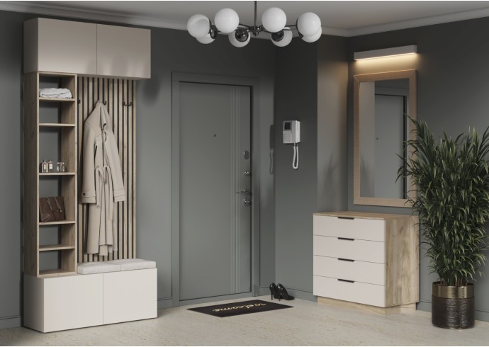 - Элегантный дизайн: Сочетание корпуса в цвете "Дуб Крафт серый" и фасадов из ЛДСП в нежном оттенке "Кашемир" создает атмосферу уюта и спокойствия в вашем интерьере.