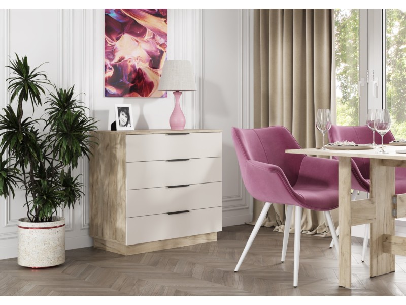 - Оптимальные размеры: Габаритные размеры комода (Д.850 х В.810 х Г.449 мм) позволяют разместить его даже в небольшом помещении, не жертвуя при этом вместительностью.