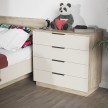 - Подиумная система: Цоколя, образующие подиумную систему, крепятся к дну комода евровинтами, создавая эффект легкости и воздушности. Высота цоколя 74 мм, отступ по периметру 20 мм.