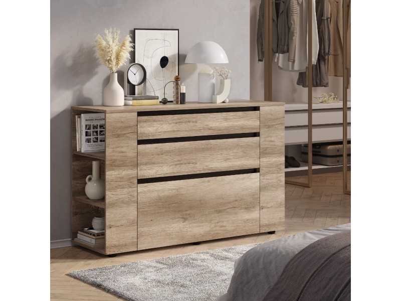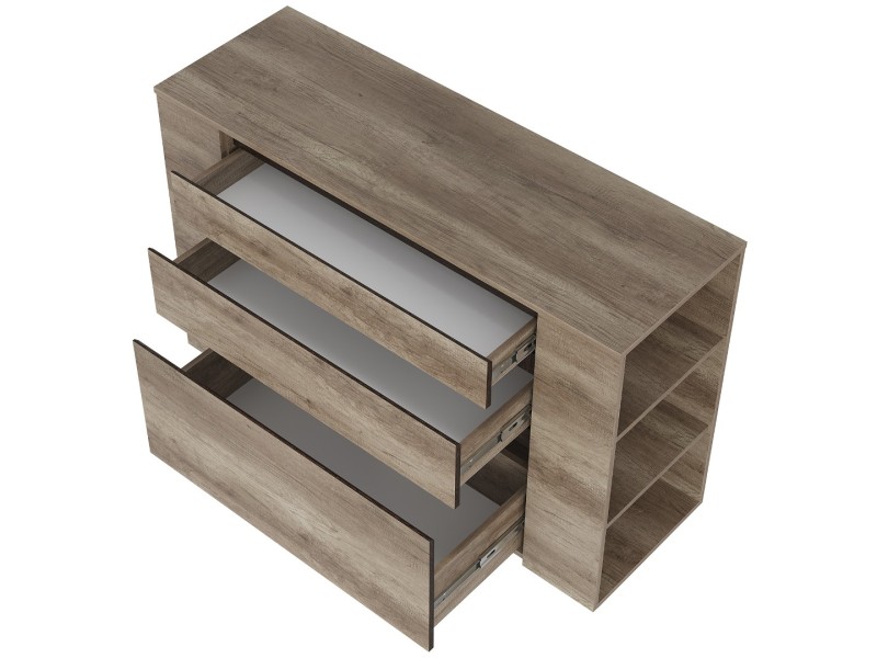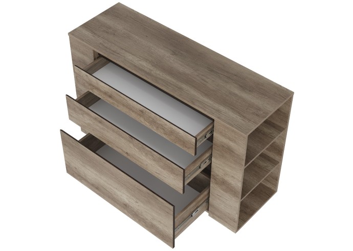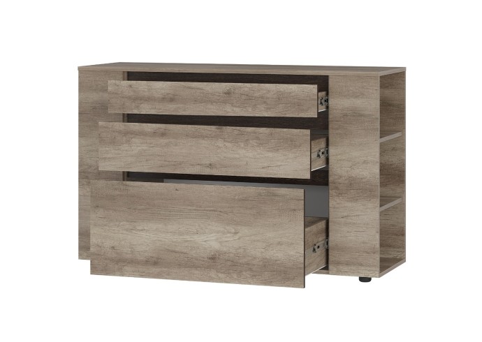 Многофункциональный комод «Энигма» отлично дополнит интерьер спальни или гостиной. В глубоких выдвижных ящиках удобно хранить постельные принадлежности, белье и одежду. На боковых встроенных полках можно разместить мелочи, которые всегда должны быть под рукой.
