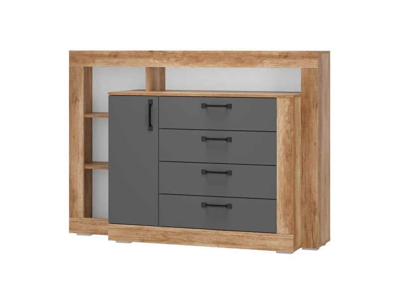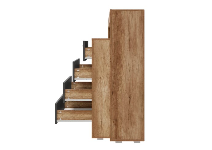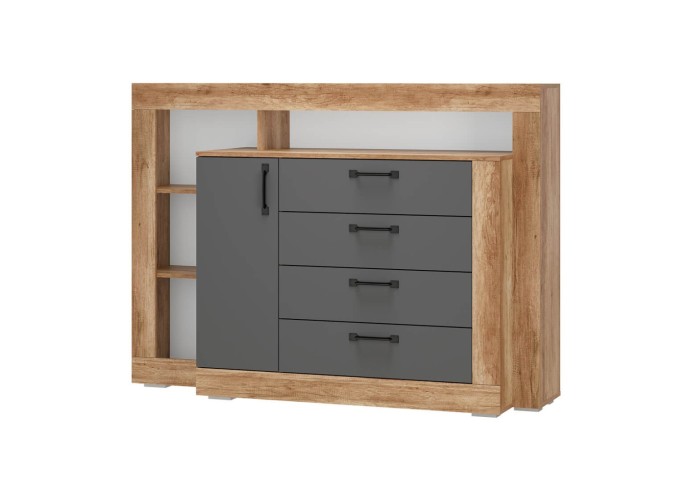Комод многофункциональный "Прима" КМ-17 - удобная система хранения для одежды, постельных принадлежностей или других хозяйственных аксессуаров. Все необходимые вещи можно расположить на полках за распашной створкой, а также в трёх вместительных выдвижных ящиках на роликовых направляющих, которые обеспечивают легкую и бесшумную эксплуатацию модели. В открытых нишах можно разместить игрушки, книги, наборы для творчества и много других вещей.
