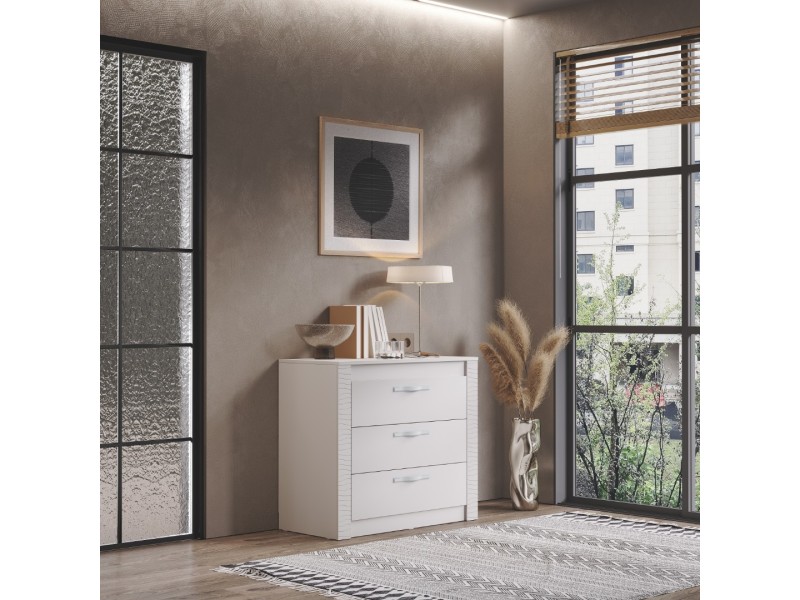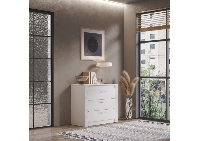 Комод "Монако" выполнен в сдержанном и элегантном стиле, как и все модели из одноименной мебельной коллекции. Изделие изготовлено в светлом цвете "кашемир" из качественной ЛДСП и имеет декоративные вставки из МДФ. Расположить все необходимые вещи можно в трех выдвижных ящиках, дополненных эргономичными ручками.