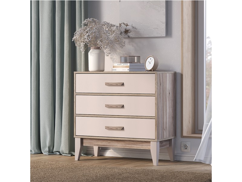 Комод "Скандика" КМ-01 с тремя ящиками подойдет и для спальни, и для гостиной, и для детской. В ящиках с удобными геометрическими ручками можно хранить постельное и одежду.
