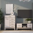 Коллекция «Скандика» – это яркий образец современной классики. Каждый модуль коллекции может использоваться в разных интерьерах и пространствах. Идеальная коллекция для тех, кто любит натуральные оттенки или мечтает создать интерьер в скандинавском стиле. Высокие эмалированные деревянные опоры из бука (200 мм) создают иллюзию большего пространства в комнате и вносят ощущение легкости в интерьер. Все модули в комплекте отличаются функциональностью, которая позволит разместить большое количество вещей. Все выдвижные элементы коллекции оснащены шариковыми направляющими.