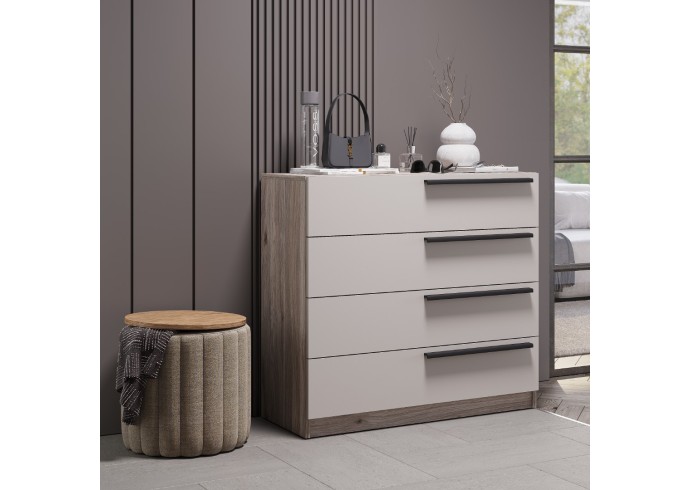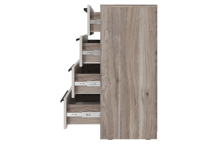 Комод "Урбан" – это универсальная модель, которая подойдет для спальни, домашнего офиса или гостиной. Четыре вместительных ящика станут идеальным дополнительным пространством для хранения белья, одежды, документов и мелочей. Эргономичные ручки из прочного пластика обеспечат удобное ежедневное использование. Устойчивые подпятники защитят напольное покрытие и позволят без труда проводить влажную уборку.