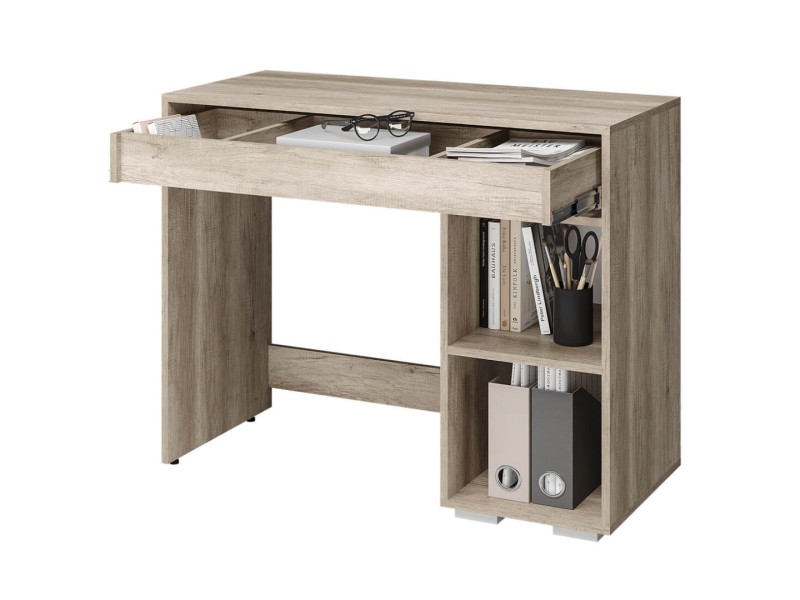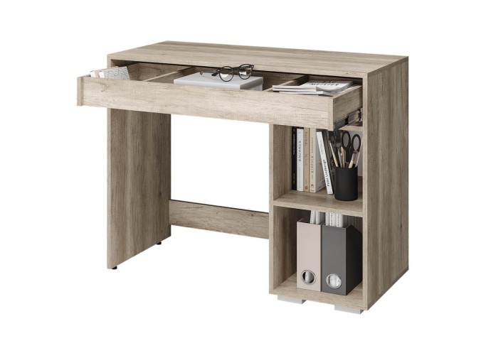 Косметический стол "Наоми" дополнит любую спальню в современном стиле. Модель состоит из большого выдвижного ящика, разделенного на три секции, и отделения с распашной дверцей, за которой находятся полки. Все эти места хранения позволят разместить вам необходимые вещи, косметические средства или украшения.