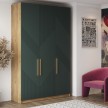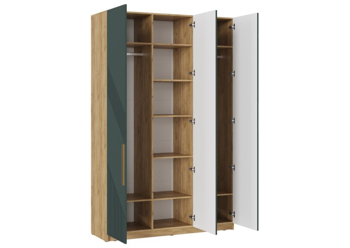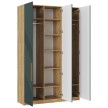 2. Внутреннее наполнение: - Шкаф "Kosta" имеет три распашные двери, за которыми скрываются полки и две металлические штанги для одежды. - Средний отсек оборудован полками, где можно разместить сложенные вещи. - Два боковых отсека предназначены для вешалок и плечиков.