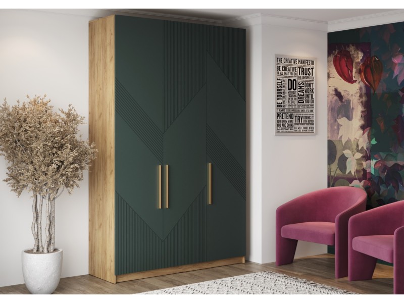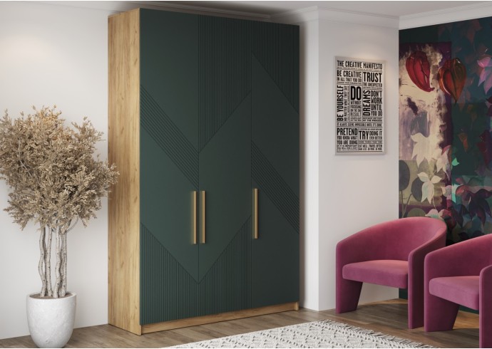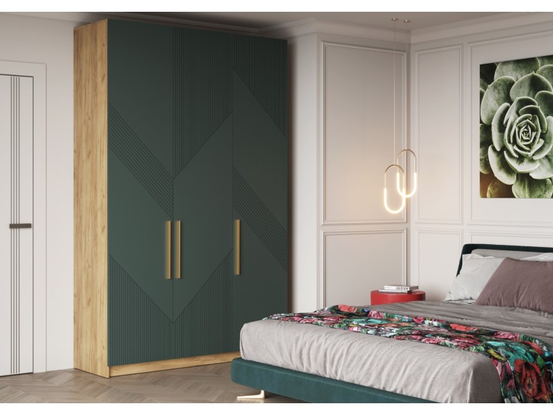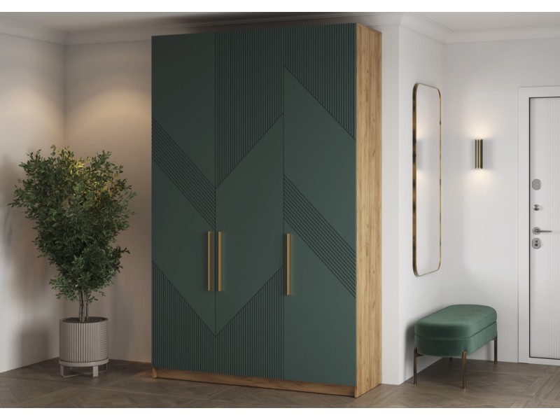 3. Практичные детали: - Петли TITUS с доводчиком обеспечивают плавное закрывание дверей без лишнего шума. - Золотая металлическая ручка подчеркнет элегантность и уникальность шкафа.