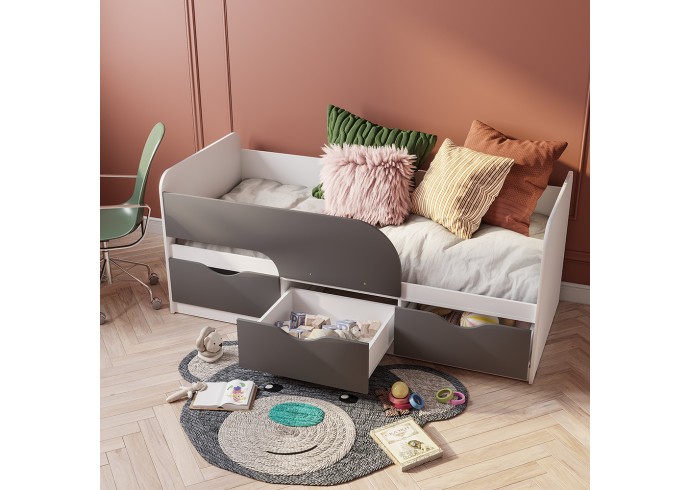 Кровать "Стандарт" с плавными линиями фасадов - эстетичный и безопасный выбор для детской комнаты. Благодаря компактным размерам она уместится в небольшой комнате, не создавая ощущения тесноты.