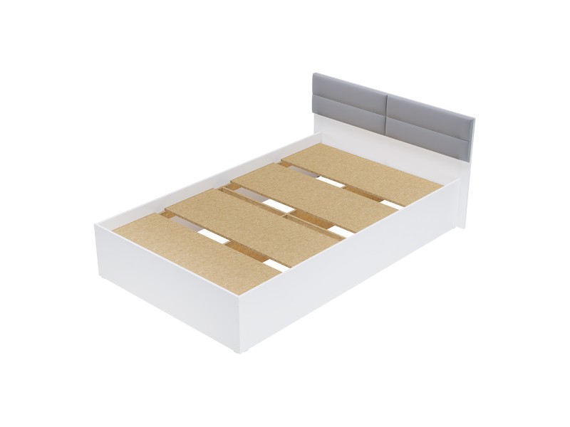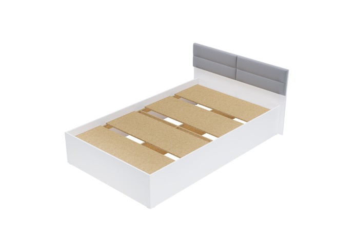 Данная модель кровати "Фьюжн" выпускается на фабрике без основания. Основание приобретается дополнительно (отдельно от кровати). На выбор: проложки ДСП, настил ЛДСП с кромкой, настил реечный либо ортопедическое основание с подъемным механизмом.