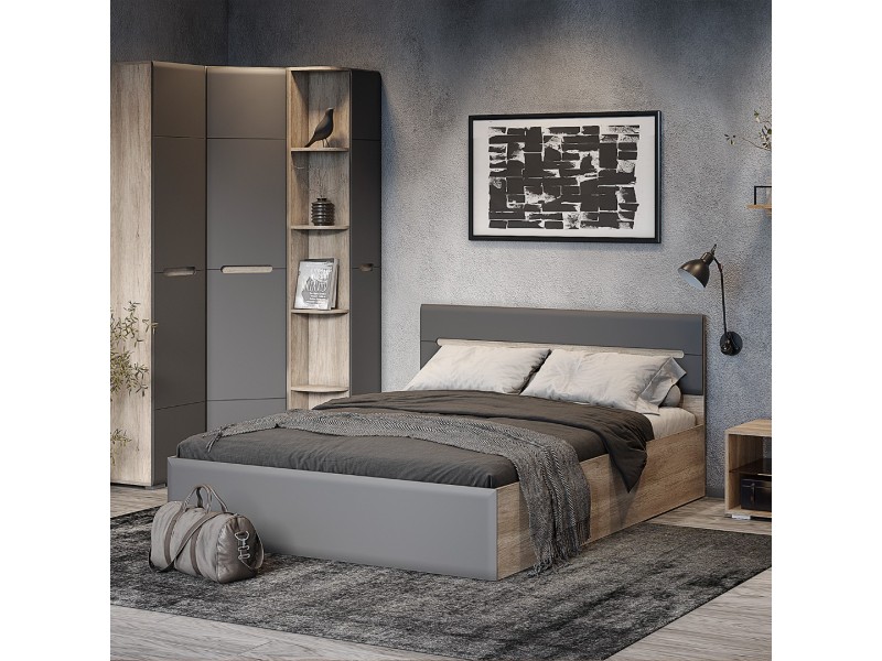 Модульная коллекция «Наоми» – это стильное современное решение в контрастном сочетании корпуса «дуб каньон» с элегантным матовым фасадом насыщенного грифельного оттенка. Оригинальное конструктивное решение коллекции – ручки фасадов, выполненные путем сложной фрезеровки с максимально реалистичным декором дубового спила.