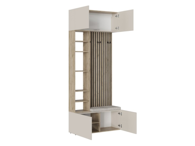Модуль прихожей БОХО отлично подходит для одиночного размещения в небольшой прихожей или составит полноценную композицию с распашными или шкафами-купе БОХО.