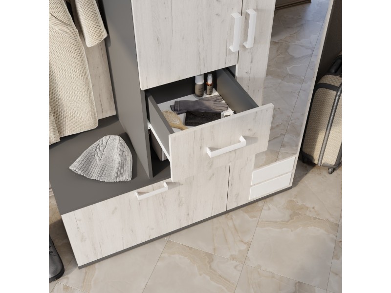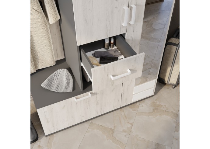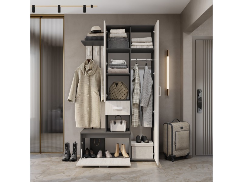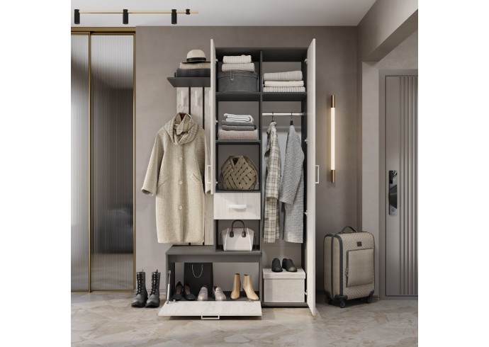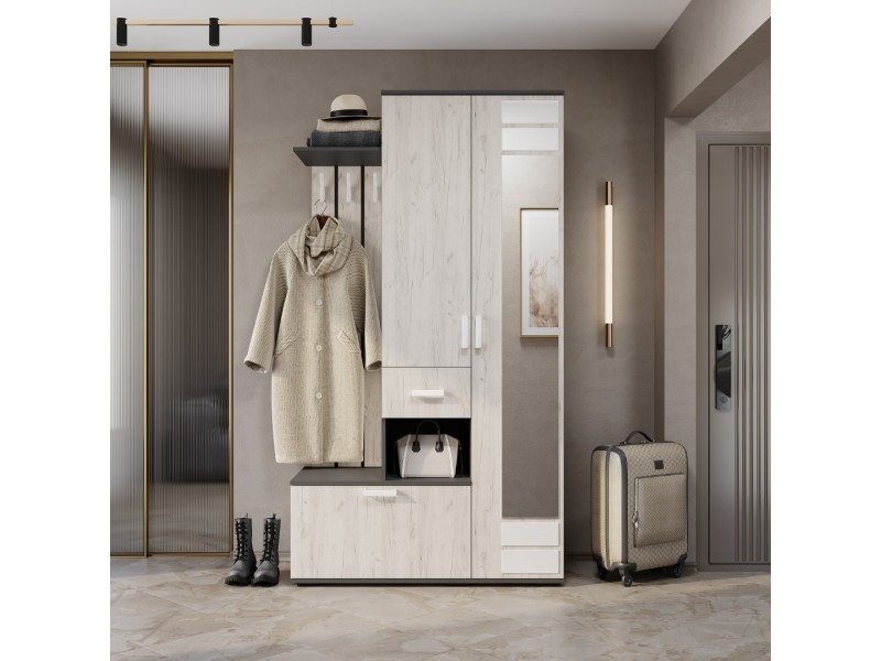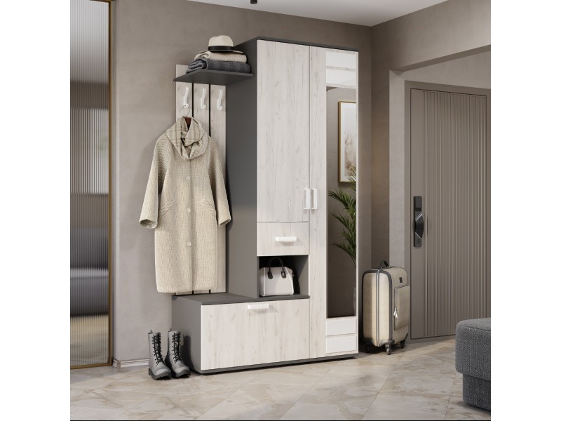 Прихожая "Лира" - идеальный баланс стиля и удобства для современного интерьера. Максимальная функциональность изделия обеспечивается за счет широкого набора предметов, элементов мебели и увеличенной глубины 524 мм.