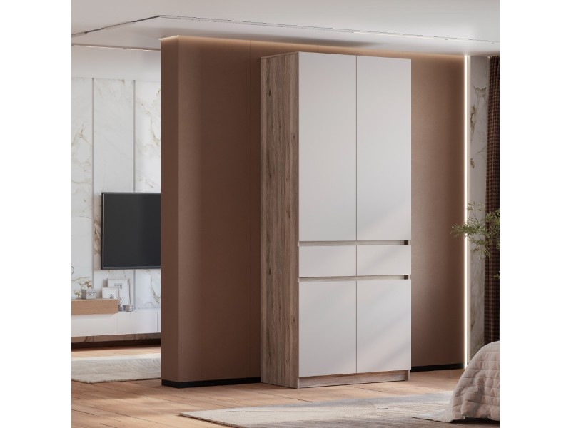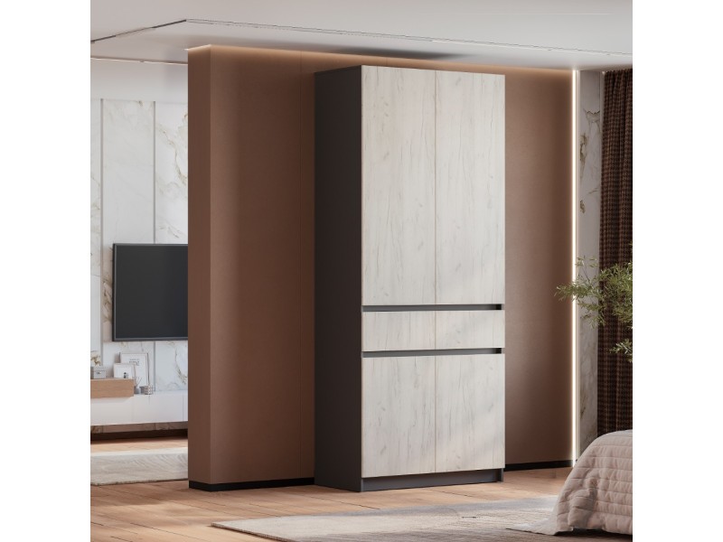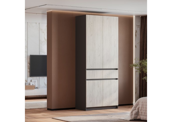 Шкаф 2-х створчатый "Багира" ШК-03 - это стиль и эргономичная конструкция. Хромированная штанга для аккуратного вертикального хранения одежды.
