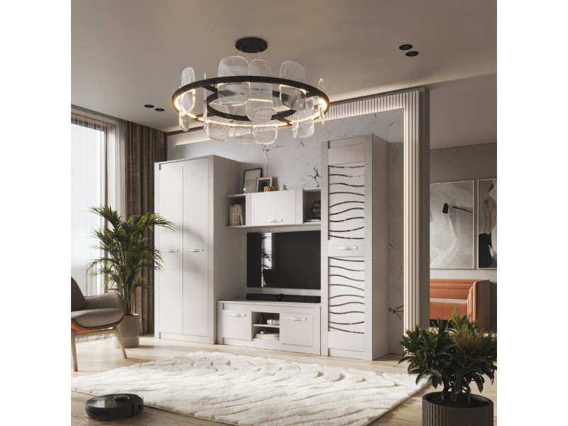Модульная коллекция «Монако» - это универсальное решение с эргономичным дизайном и функциональностью для современного дома. Фрезеровка с волнообразными узорами на фасадах привлекает внимание. Интерьеры с белыми декорами в 2024 году заменяются на нюдовые тона. Трендовый оттенок «кашемир» позволяет использовать в интерьере теплые и холодные декоры, а также различные варианты цветового решения домашнего текстиля, аксессуаров и других элементов. Мягкий приглушённый оттенок «кашемир» является изысканным выбором для стильного дома и придаёт нотку нежности и уюта.