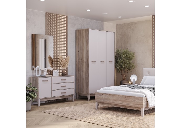 Коллекция «Скандика» – это яркий образец современной классики. Каждый модуль коллекции может использоваться в разных интерьерах и пространствах. Идеальная коллекция для тех, кто любит натуральные оттенки или мечтает создать интерьер в скандинавском стиле. Высокие эмалированные деревянные опоры из бука (200 мм) создают иллюзию большего пространства в комнате и вносят ощущение легкости в интерьер. Все модули в комплекте отличаются функциональностью, которая позволит разместить большое количество вещей. Все выдвижные элементы коллекции оснащены шариковыми направляющими.