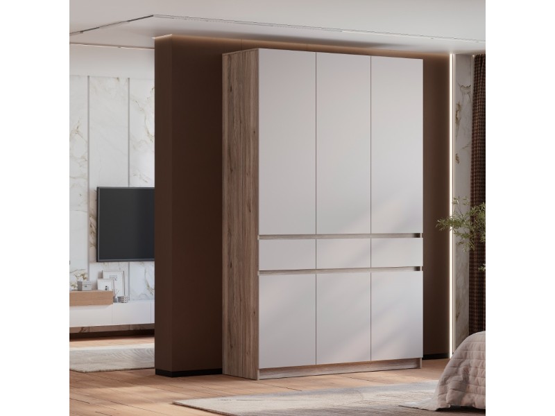 Шкаф 3-х створчатый "Багира" ШК-08 - это эстетичный дизайн и эргономичная конструкция. Хромированная штанга для аккуратного вертикального хранения одежды.