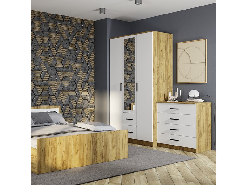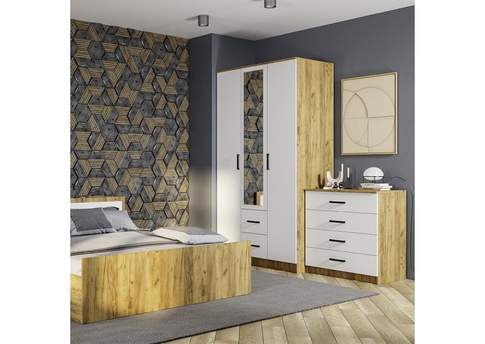 Модульная спальня «Евро», выполненная в современном стиле, придаст вашей комнате образ идеального и гармоничного пространства, отразив характер и вкусовые предпочтения хозяина. Приветливая и спокойная атмосфера, подаренная этой коллекцией, позволит почувствовать себя окруженным домашним уютом сразу же, как только вы в нее попадете. Продуманные до мелочей детали придадут эстетическую утонченность интерьеру, позволив забыть о городской суете. Коллекция выполнена в комбинации белого и цвета «крафт». Геометрические ручки очень удобны в использовании.