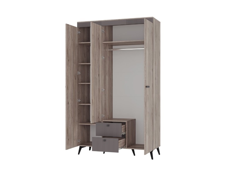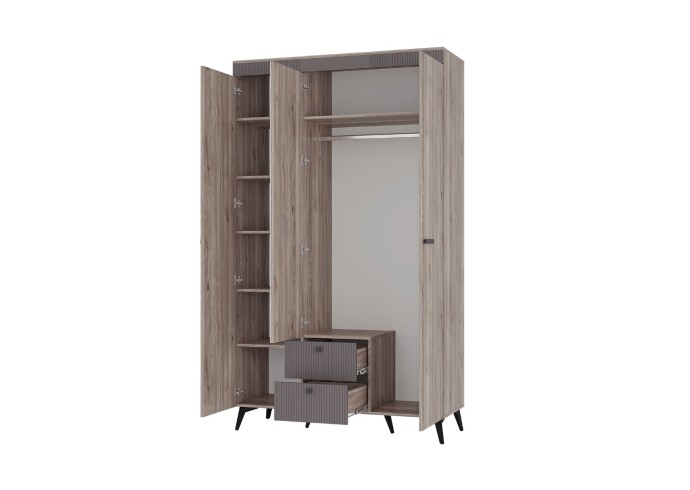 Вместительный трехстворчатый шкаф «Кассандра» позволит организовать грамотное хранение одежды. В данной модели предусмотрены зоны для всего гардероба: вертикальное пространство со штангой, просторные полки и блок с ящиками для белья.