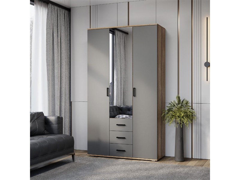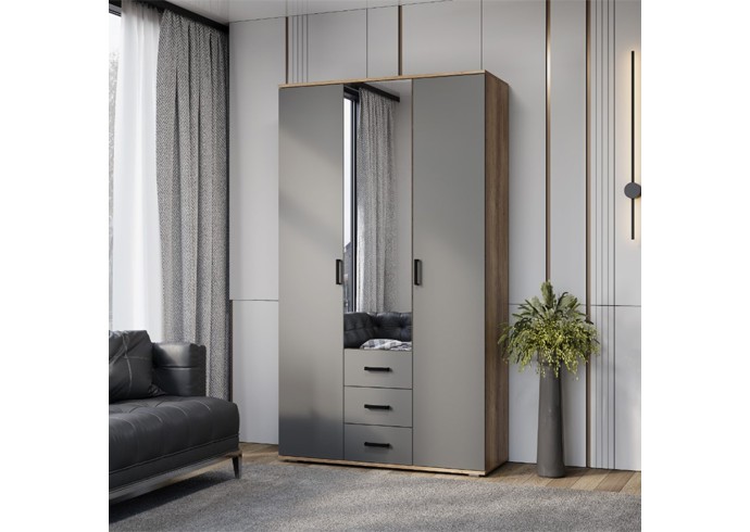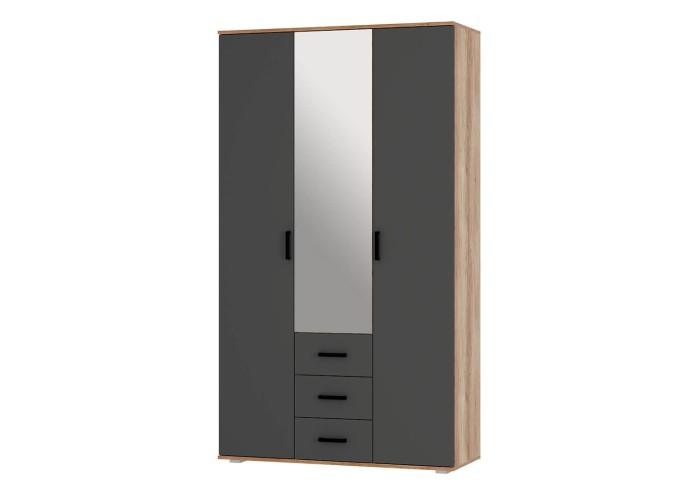 Шкаф 3-х створчатый "Вегас" ШК-08 - это вместительная и стильная модель для гостиной или личной комнаты. Модель состоит из двух зон: центральной — для вертикального хранения и вместительными ящиками и боковой — с шестью просторными полками. Стильная зеркальная дверца с еврокромкой добавит оригинальности вашему интерьеру.