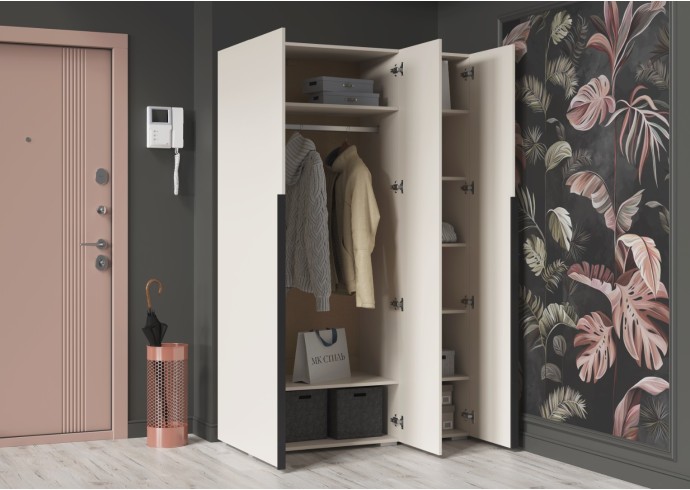 - Возможность модульной сборки: В фурнитуру заложены межсекционные стяжки для соединения с АЙРИ Шкаф ШК-002 (2 створки), позволяя создать индивидуальную систему хранения.