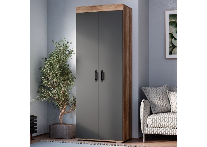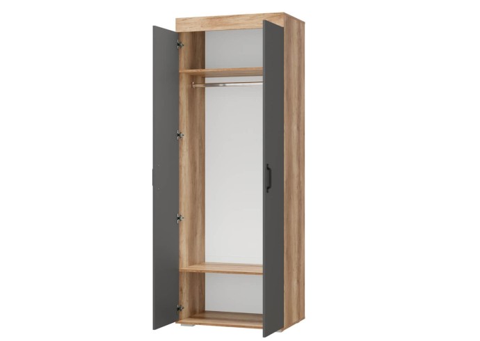 Двухстворчатый шкаф «Прима» - компактная и яркая модель для современного интерьера. Для тех, кто хочет сэкономить пространство, но при этом уместить все самые нужные вещи в одном месте. Данная модель шкафа идет в комплекте со штангой. По желанию её можно заменить полками ПЛ-06, которые приобретаются отдельно.