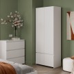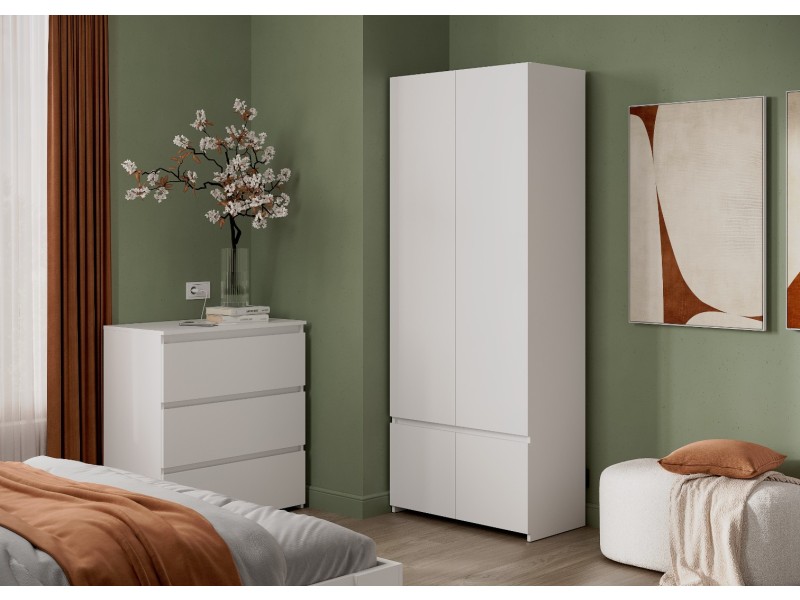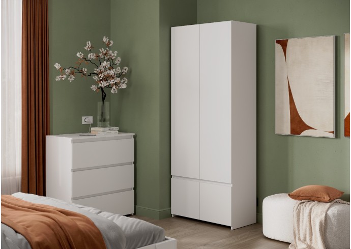 Современный минималистичный дизайн: Четкие линии, гладкие фасады без ручек и целостное цветовое решение делают шкаф универсальным для любого интерьера.