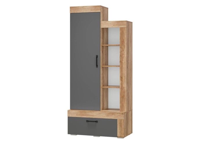 Коллекция "Прима" в модном декоре "дуб каньон/графит" удачно вписывается в городской индустриальный стиль и выглядит очень необычно и оригинально. Приятный корпус под дерево и матовые тёмные фасады - такое контрастное сочетание добавит комнате стиля.