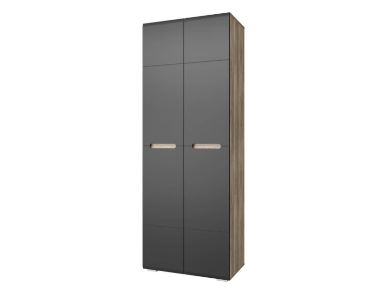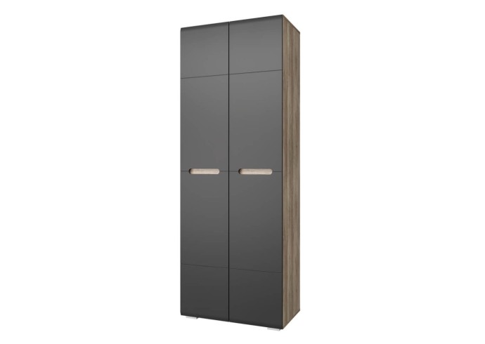 Шкаф распашной из серии "Наоми" – красивое и стильное решение для современного интерьера. Модель имеет две распашные створки, изготовленные из МДФ темного серого цвета, ручки являются частью фасадов. Шкаф состоит из вместительного отделения со штангой для одежды на вешалках и двух ниш для хранения трикотажа или обуви. Данная модель идет в комплекте с хромированной штангой. По желанию Вы можете заменить штангу дополнительными полками -3 шт (ПЛ-02). Полки приобретаются отдельно.
