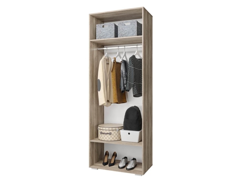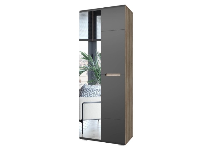 Шкаф распашной из серии "Наоми" – красивое и стильное решение для современного интерьера. Модель имеет две распашные створки, одна из них полностью зеркальная, а вторая – темного серого цвета с интегрированной ручкой. Шкаф состоит из вместительного отделения со штангой для одежды на вешалках и двух ниш для хранения трикотажа или обуви. Можно дополнительно укомплектовать полками - 3 шт (ПЛ-02).