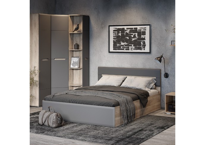 Модульная коллекция «Наоми» – это стильное современное решение в контрастном сочетании корпуса «дуб каньон» с элегантным матовым фасадом насыщенного грифельного оттенка. Оригинальное конструктивное решение коллекции – ручки фасадов, выполненные путем сложной фрезеровки с максимально реалистичным декором дубового спила.