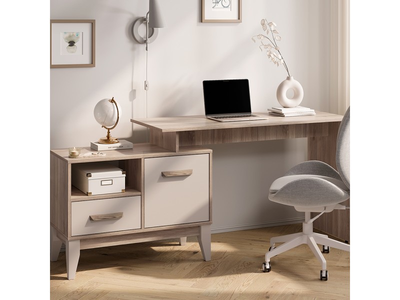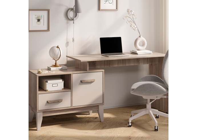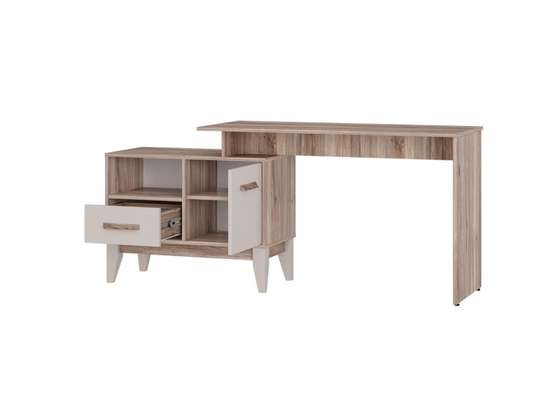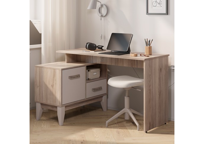 Письменный стол «Скандика» ПС-02 - это универсальное решение для дома и офиса. Данная модель оснащена удобной рабочей поверхностью, на которой можно разместить ноутбук, лампу и рабочие инструменты. Помимо рабочей поверхности также имеется встроенная тумба, которая состоит из просторного отсека за дверцей, ящика и одной открытой полки. Благодаря компактным размерам стол легко уместится даже в небольшой комнате. Ручки повторяют текстуру корпуса «дуб смоки».