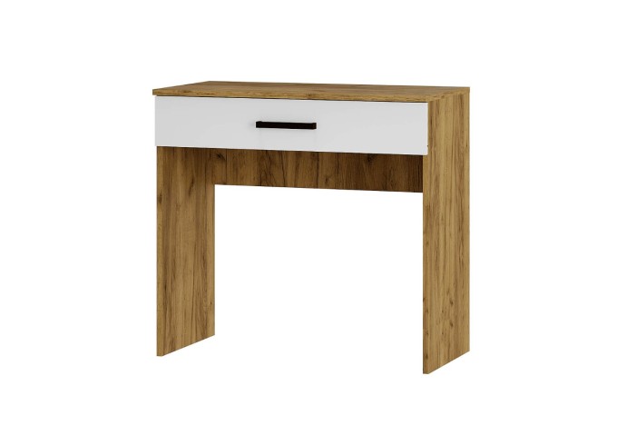 Легкий и компактный туалетный столик «Евро» подойдет для спальни, гостиной и прихожей. Выкатной ящик оснащен качественной фурнитурой и вмещает все нужные вещи – косметику, аксессуары и другие мелочи. Верхняя панель может использоваться как полка для дополнительных источников освещения или предметов, которые всегда должны быть под рукой.