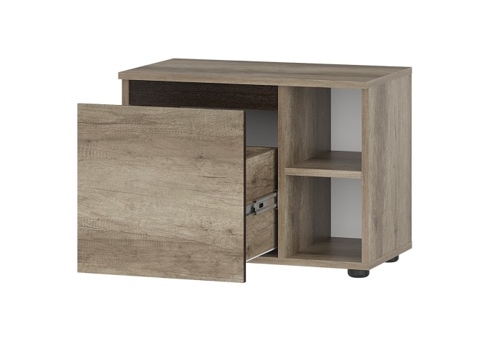 Компактная прикроватная тумба «Энигма» сэкономит пространство, но при этом позволит держать все самые нужные вещи рядом. Тумба состоит из одного вместительного ящика для постельного белья, а также открытых полок для мелочей.