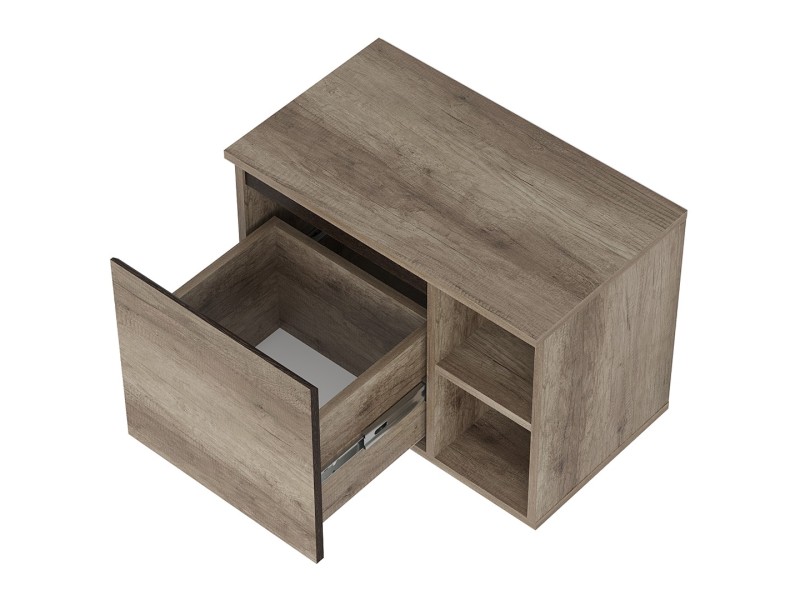 Толщина кромки – 0,4 мм. «Дуб каньон» кромится в цвет корпуса. Фасадные части цвета «дуб каньон» кромятся цветом «венге».