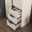 - Две створки и три выдвижных ящика: Шкаф оснащен двумя створками и тремя вместительными ящиками на шариковых направляющих полного выдвижения, обеспечивающими легкий доступ к содержимому. Внутренние размеры каждого ящика: 363 х 106 х 418 мм.
