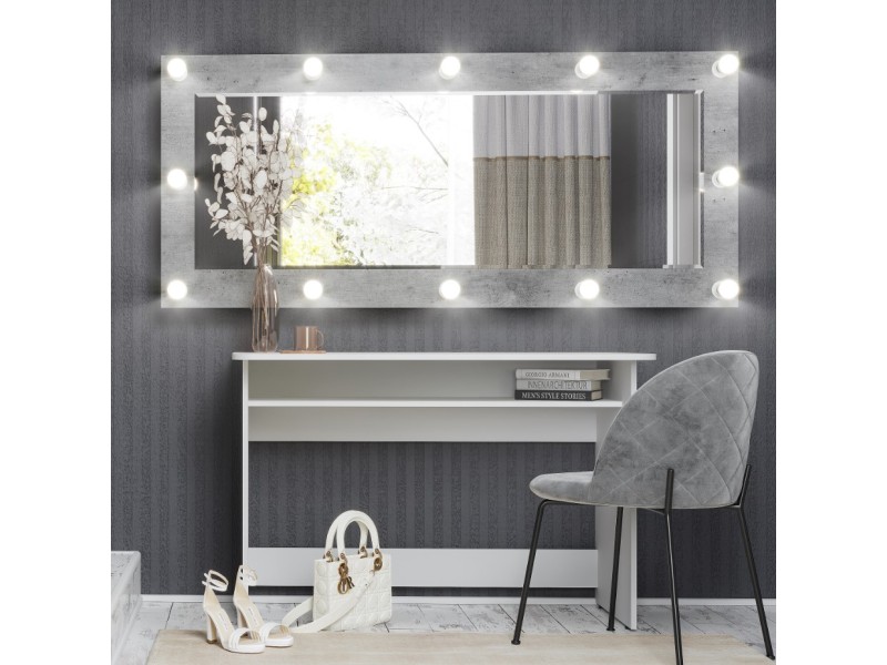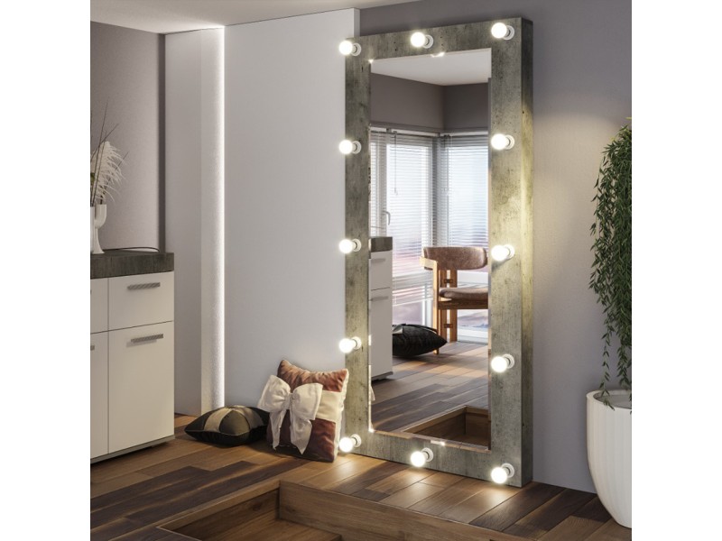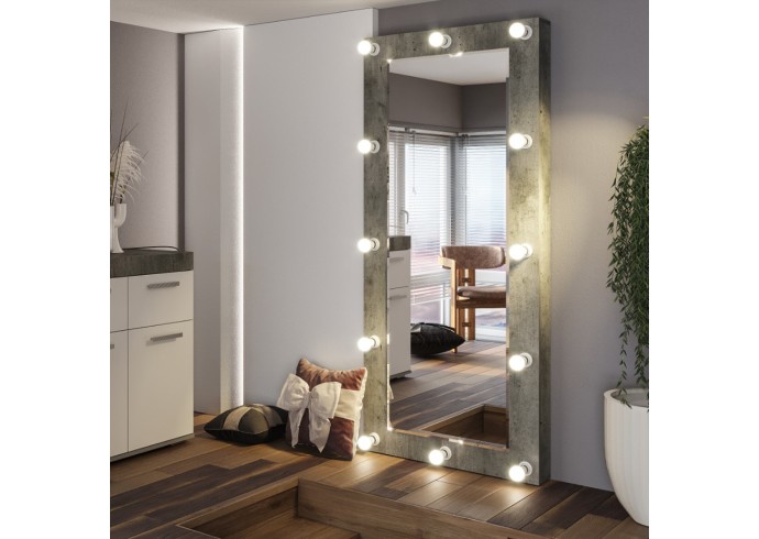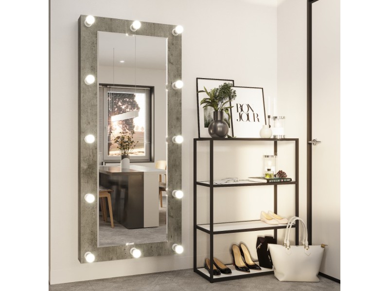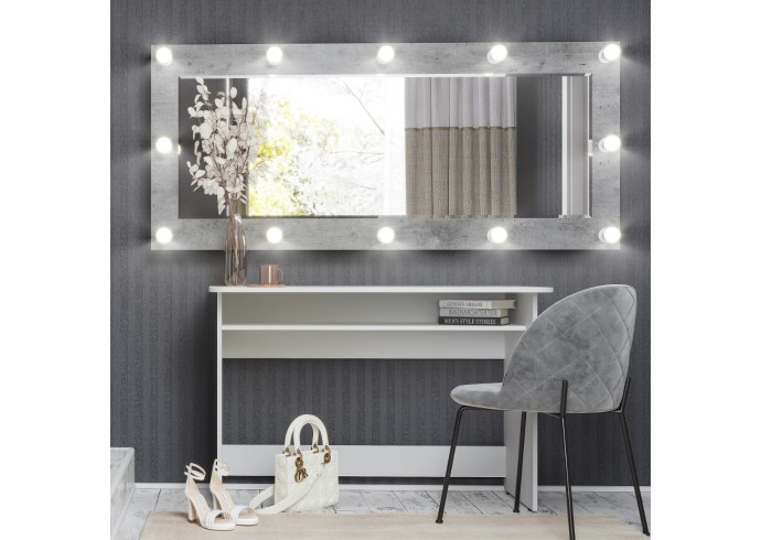 Большое зеркало "Инстайл" – это предмет интерьера, который помимо своей основной функции, позволит вам визуально расширить пространство и привнести больше света в помещение. Модель можно разместить в любой комнате, как вертикально, так и горизонтально. Рама зеркала изготовлена из ЛДСП в цвете "бетон" и дополнена по всему периметру лампочками с выключателем. Лампочки приобретаются отдельно.